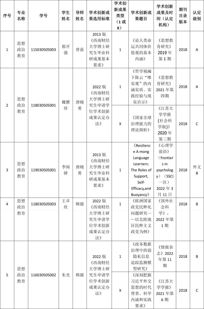 经学生本人申请,导师把关,学院初审,现对今年上半年申请博士学位的各位研究生学术创新成果做如下公示。